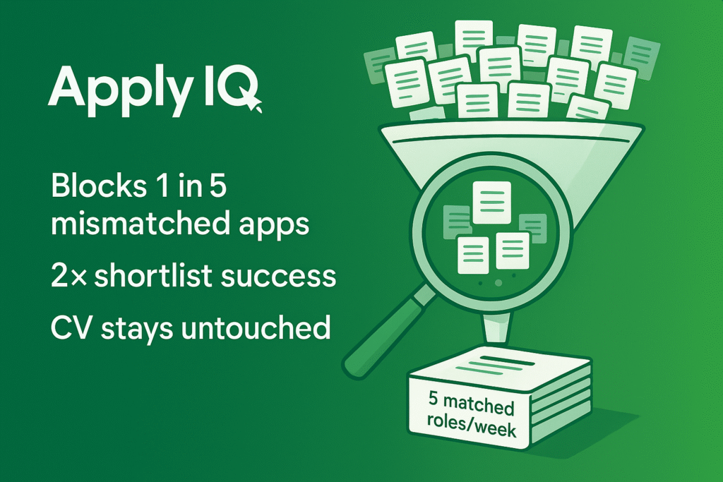 Apply IQ is Adzuna’s free AI tool that auto-applies to roughly five highly matched jobs per user each week.