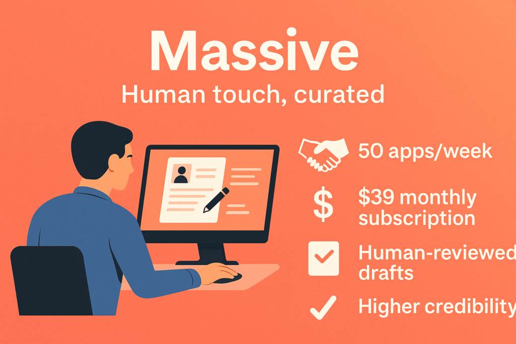 Massive is a subscription service that sends up to 50 job applications a week for $39, and a human reviewer checks every draft before it goes out, according to WIRED.